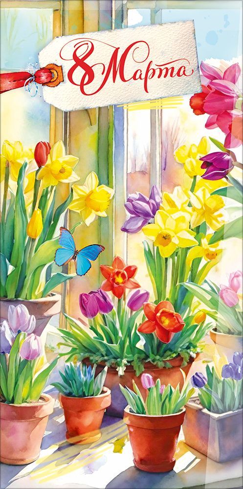Конверт для денег формата евро предназначен для оформления подарка к 8 Марта и рассчитан на использование в розничных продажах и оптовых поставках для магазинов подарочной и праздничной продукции. Изделие изготовлено из плотного картона, обеспечивающего стабильную геометрию и сохранность вложения при транспортировке и хранении. Готовый размер конверта составляет 168 × 84 мм, что удобно для размещения купюр стандартного европейского и российского формата без дополнительного сгиба. На лицевой стороне размещена полноцветная иллюстрация с весенней цветочной композицией в горшках на фоне окна и декоративным ярлыком с надписью «8 Марта», что делает изделие тематически ориентированным на Международный женский день и позволяет использовать его как универсальное решение для поздравлений коллег, партнёров, клиентов и частных адресатов. Конверт имеет фигурную вырубку, за счёт чего достигается аккуратный, визуально завершённый край и удобство открывания, что важно при частом демонстрационном использовании в торговом зале. Наличие печатного поздравительного текста внутри сокращает время подготовки подарка и позволяет применять конверт в стандартных корпоративных сценариях без дополнительной доработки. Отделка выполнена с использованием радужных блёсток в лаке, создающих умеренный декоративный эффект и устойчивое к истиранию покрытие при нормальной эксплуатации. Материал и формат позволяют компактно хранить конверты стопками, не деформируя их при длительной складской логистике. В упаковке 10, что удобно для планирования оптовых закупок, выкладки по сериям и формирования сезонных предложений. Изделие может использоваться как самостоятельный носитель денежного подарка или в составе подарочного набора, сочетаясь с цветами, сладостями и сувенирной продукцией.