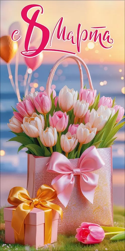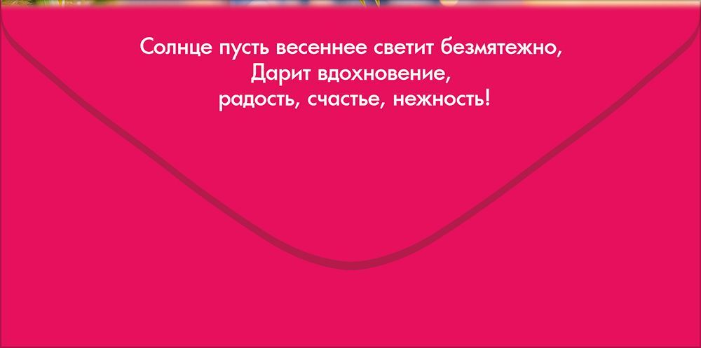 Поздравительный конверт для денег «8 Марта» с романтичным и нежным дизайном преобразит Международный женский день. На конверте изображены нежные тюльпаны в подарочном розовым пакете с атласным бантом и являются центром всей композиции. На фоне сверкает голубое море и разливается розовый закат. Идеальный подарок для любительницы солнечных путешествий. Также внутри находится текст с приятными пожеланиями. Данный дизайнерский конверт для денег можно вручить как основной презент или в дополнение к нему. Удобный евроформат позволяет поместить внутрь любую денежную сумму, подарочный сертификат или билеты на концерт. Благодаря прочным материалам производства и качеству печати изделие удобно транспортировать и хранить – оно надолго сохранит свой яркий внешний вид, не помнется и не выцветет, что делает его не только хорошим подарком, но и прекрасным памятным сувениром!