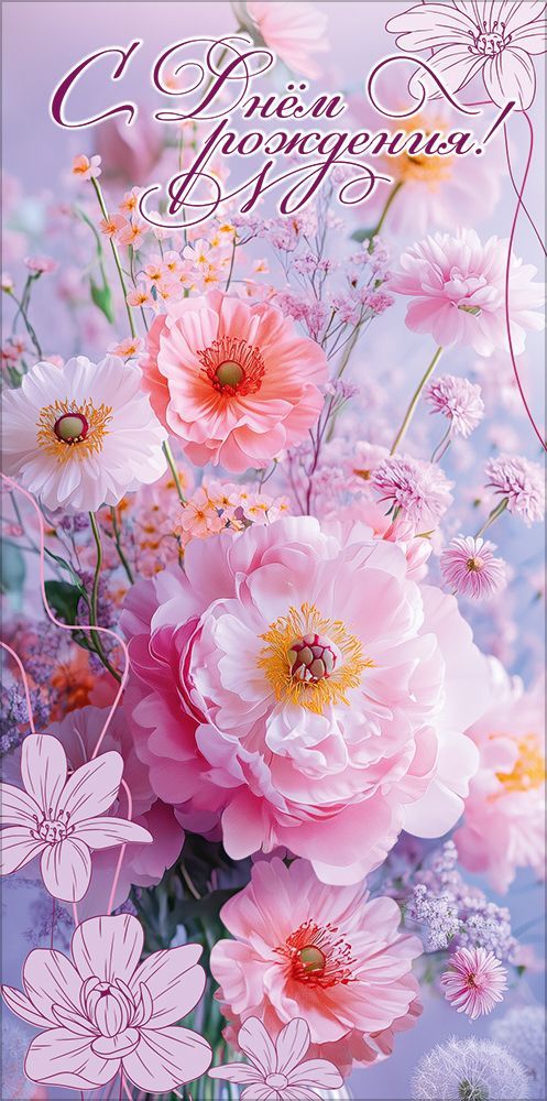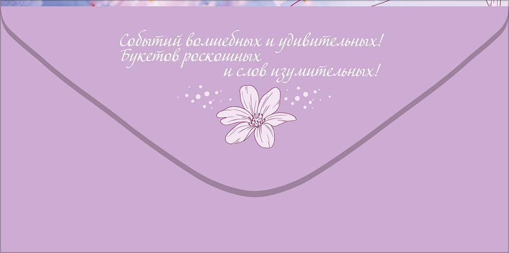 Конверт для денег формата «Евро» предназначен для оформления денежного подарка ко дню рождения и ориентирован на использование в розничной продаже и оптовых поставках. Изделие выполнено из плотного картона, что обеспечивает стабильную геометрию, устойчивость к деформации при хранении и транспортировке, а также аккуратный внешний вид в торговом зале. Готовый размер конверта 168 × 84 мм позволяет удобно размещать внутри стандартные купюры без сгибов и заломов, что важно как для конечного пользователя, так и при формировании унифицированного ассортимента у оптового покупателя. Лицевая сторона оформлена полноцветным изображением букета крупных пионовидных и полевых цветов в розово‑лиловой гамме с дополнением контурных графических элементов, создающих многослойный декоративный эффект. Надпись «С Днём рождения!» выполнена каллиграфическим шрифтом и интегрирована в композицию, что делает конверт готовым решением без необходимости дополнительного оформления. Отделка включает радужные блестки в лаке, которые наносятся выборочно на отдельные фрагменты изображения и надписи, придавая поверхности умеренный перелив при изменении угла освещения; такое покрытие стойко к истиранию при бережном обращении и не осыпается при стандартных условиях эксплуатации и выкладки. Фигурная вырубка по краю добавляет изделию выразительный силуэт и повышает привлекательность на полке, при этом конструкция сохраняет достаточную жесткость для штабелирования и упаковки. Внутренняя сторона предусматривает размещение денежного вклада и краткого персонального пожелания, что удобно для частных покупателей и корпоративных дарителей. Конверт поставляется партиями по 10, что упрощает учет, планирование запасов и формирование витринных выкладок по цветовой и тематической группе. Изделие подходит для продажи поштучно, для формирования тематических стоек с продукцией ко дню рождения, а также для использования в качестве стандартного позиционируемого артикула в ассортименте подарочной упаковки.
