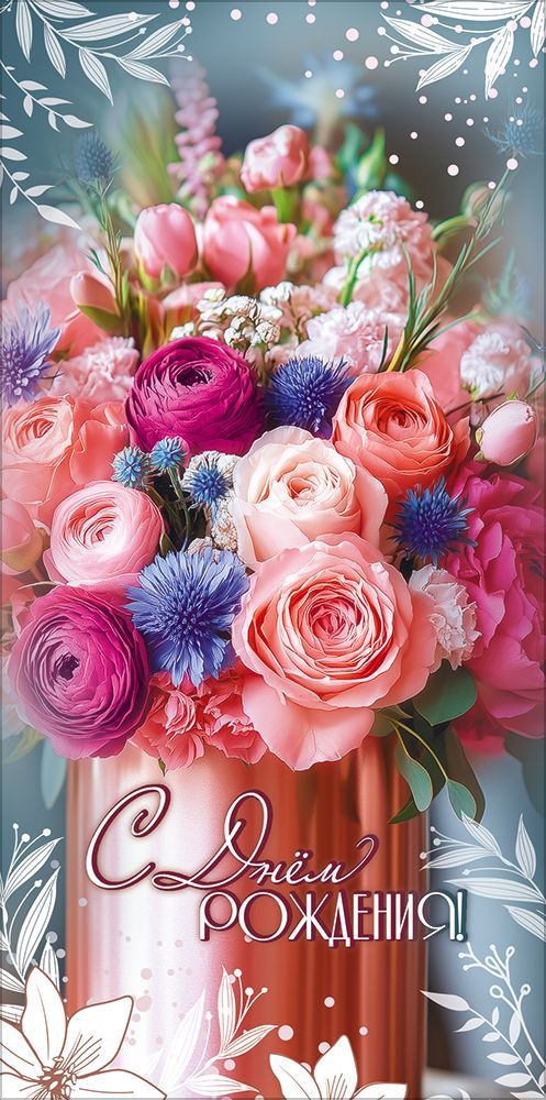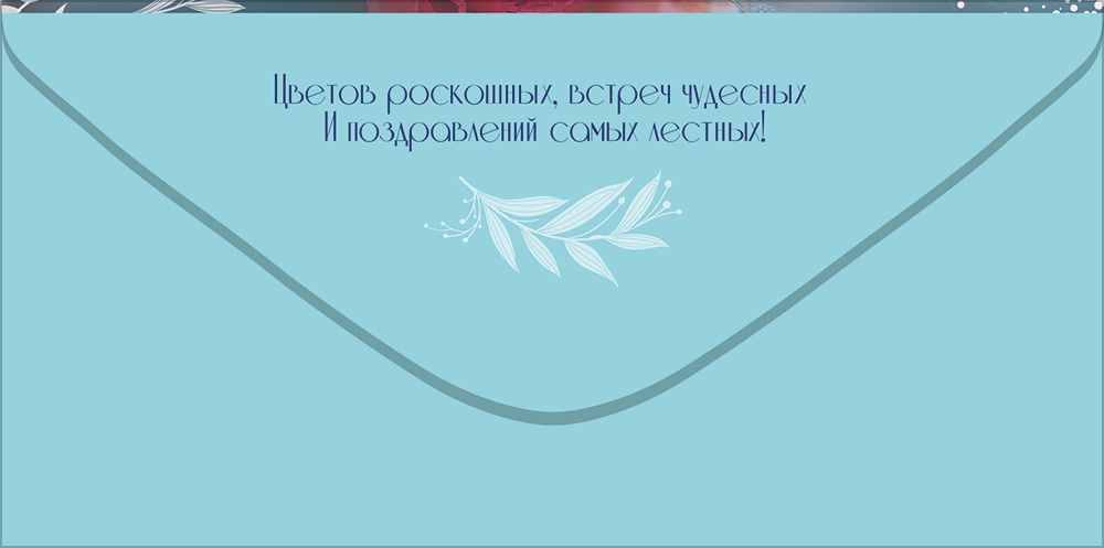 Конверт для денег формата Евро предназначен для вручения денежных подарков и подарочных сертификатов на день рождения. Изделие выполнено из плотного картона, что обеспечивает стабильную геометрию, аккуратный внешний вид и сохранность вложения при транспортировке и хранении. Готовый размер конверта 168 × 84 мм соответствует распространённым стандартам денежного конверта, что удобно для оптового формирования ассортимента и выкладки на полке. Лицевая сторона оформлена полноцветным изображением букета из роз, ранункулюсов и полевых цветов в мягкой розово-голубой гамме с декоративными белыми растительными элементами по краям, композиция дополнена поздравительной надписью «С Днём рождения!». Наличие текста сокращает потребность в дополнительной открытке и упрощает выбор конечному покупателю для типовых поздравительных случаев. Фигурная вырубка придаёт конверту индивидуальный силуэт и подчёркивает декоративные элементы дизайна, при этом конструкция остаётся технологичной для серийного производства и упаковки. Поверхность оформлена глянцевым ВД-лаком, который усиливает цветопередачу, придаёт изображению выраженный глянец и повышает устойчивость к истиранию, влаге и случайным загрязнениям, что особенно важно при многоразовом перекладывании товара в торговом зале и при транспортировке коробами. Внутренняя часть конверта рассчитана на размещение купюр без сгиба и может использоваться как для наличных, так и для подарочных сертификатов стандартного удлинённого формата. Плотность картона и качественная отделка способствуют сохранению формы при хранении в стопках и минимизируют риск заломов по краям. В одной упаковке 10 конвертов, что удобно для оптовых закупок, формирования тематических серий и планирования остатков по категории праздничной упаковки к дням рождения в розничных и корпоративных продажах.