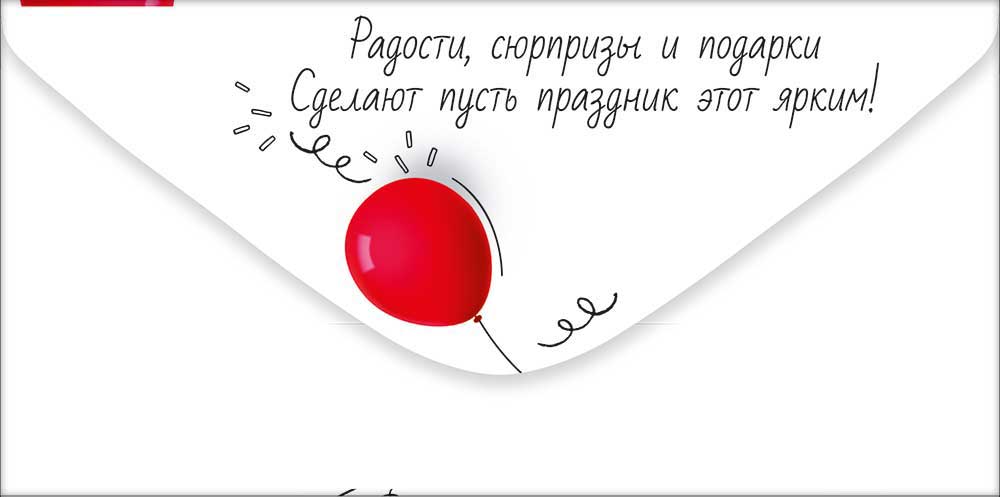 Конверт для денег формата евро предназначен для оформления денежных подарков и сертификатов на день рождения и ориентирован на использование в розничных продажах и оптовых поставках для магазинов подарков, канцелярии и сувенирной продукции. Готовое изделие имеет размеры 168 × 84 мм, что обеспечивает совместимость с большинством стандартных банковских купюр и позволяет аккуратно вкладывать деньги без сгибов. Конверт изготовлен из плотного картона, устойчивого к деформации при транспортировке и хранении, что важно при формировании крупного ассортимента и выкладке на полке. Материал сохраняет форму, не просвечивает, обеспечивает достаточную жесткость и удобство работы кассира или продавца при упаковке подарка. Лицевая сторона оформлена полноцветным изображением с воздушными шарами и поздравительным текстом «С Днем рождения!», что позволяет использовать конверт как самостоятельный поздравительный элемент без дополнительной открытки. Печать выполнена с применением глянцевого УФ-лака, который подчеркивает цветовую насыщенность, придает поверхности легкий блеск и повышает стойкость изображения к истиранию, влаге и выцветанию при длительном хранении на витрине. Конструкция конверта рассчитана на стандартное вкладывание купюр и последующее закрытие при помощи клеевого клапана или декоративной ленты (способ запечатывания подбирается пользователем), внутренняя площадь позволяет при необходимости добавить короткое письменное поздравление. Компактный формат удобен для транспортировки оптовых партий, оптимален для стеллажного и прикассового размещения, а также для фасовки в наборы подарочной продукции. В одной упаковке 10 изделий, что облегчает планирование закупок и поддержание стабильного товарного запаса в торговой точке или на складе. Конверт подходит для использования в качестве универсального решения для поздравления взрослых и детей, уместен как в частных, так и в корпоративных подарках, что расширяет возможности его включения в ассортиментную матрицу.