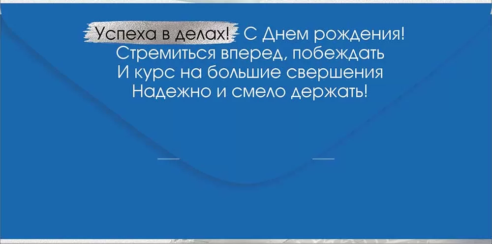 Конверт изготовлен из плотного, качественного материала и отличается высоким разрешением печати, благодаря чему выглядит стильно и презентабельно. Он станет не просто упаковкой для подарка, а красивым и памятным сувениром! Внутри напечатаны теплые пожелания в стихах, которые отлично дополнят вложенную в него денежную сумму, подарочный сертификат или билеты на концерт.
