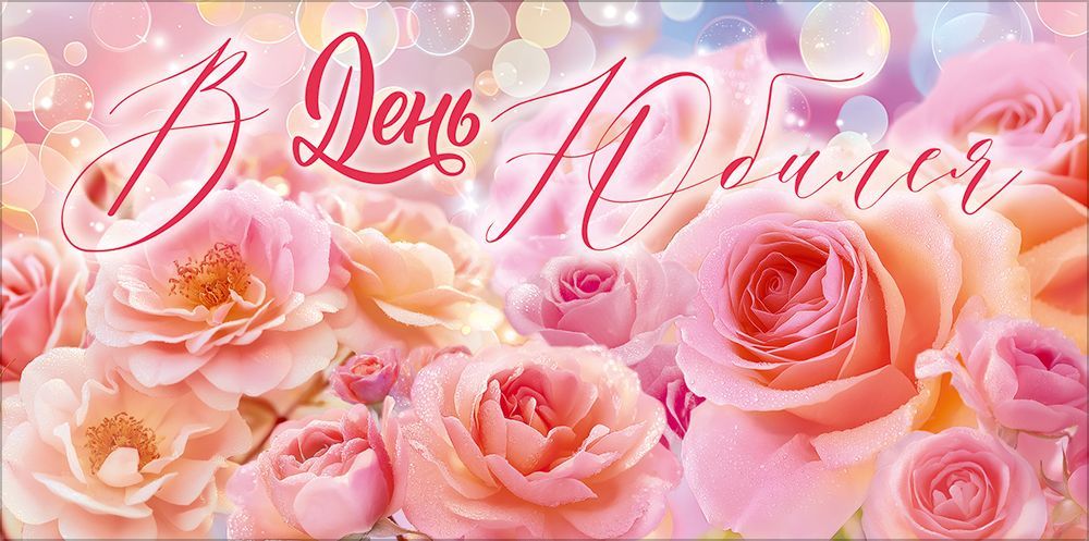 Конверт для денег «В День Юбилея» (розовые цветы)
