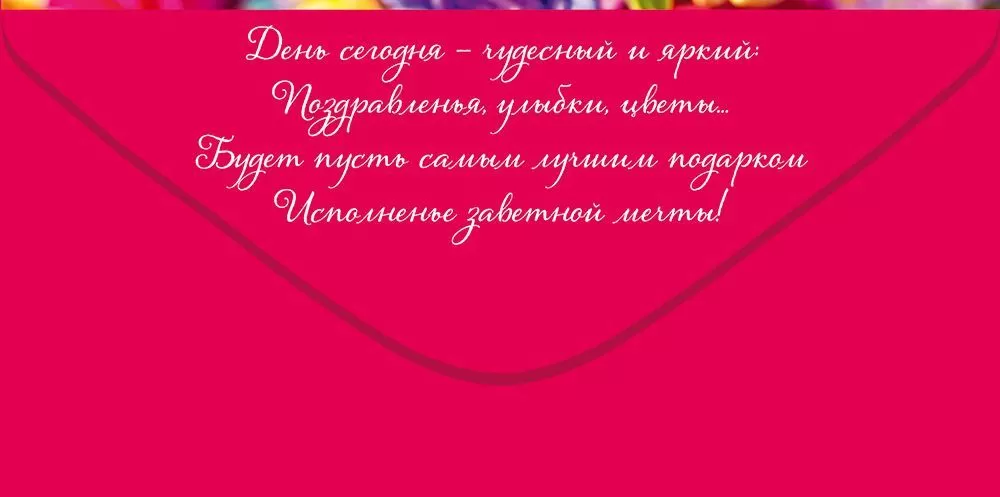 Подарочный конверт изготовлен из плотного картона. Материал хорошо держит форму и не помнется при транспортировке. Сверху на картонной основе отпечатано красочное полноцветное изображение. На обратной стороне есть теплые пожелания.