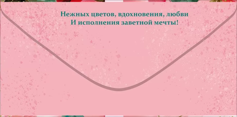 Поздравительный конверт для денег «Поздравляем!» преобразит любое торжество! Украшающие лицевую сторону веточки крупных розовых бутонов делают вид дизайна невероятно женственным и элегантным. Зеленые листочки слегка разбавляют цветовую палитру, а художественная техника исполнения станет чудесным акцентом, делая композицию запоминающейся и интересной. Изделие выполнено из прочного материала, имеет высокое качество печати и дополнительные инкрустации в виде золотых блесток в лаке, предупреждая их обсыпание или отслаивание – всё это делает данный конверт отличным памятным сувениром. Во внутренней части напечатаны пожелания в стихах, которые отлично дополнят вложенную в него денежную сумму, подарочный сертификат или билеты на концерт.