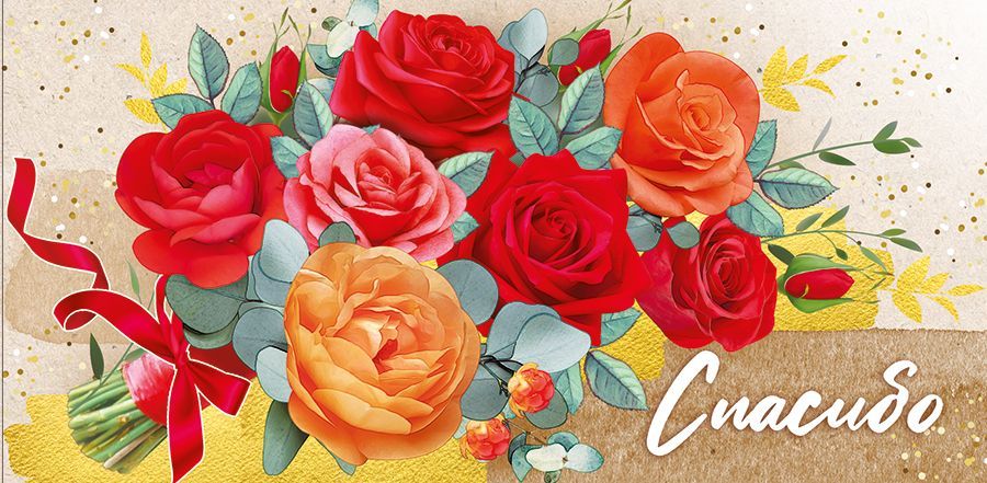 Конверт для денег формата «Евро» предназначен для упаковки денежных подарков и небольших плоских вложений и ориентирован на использование в торговых сетях, сувенирных отделах и сервисах по оформлению подарков. Изделие изготовлено из плотного картона, что обеспечивает стабильную геометрию, аккуратный внешний вид и сохранность содержимого при транспортировке и хранении. Размер конверта в готовом виде составляет 168 × 84 мм, что соответствует распространённым стандартам денежного конверта и позволяет закладывать как купюры, так и подарочные сертификаты без дополнительной подрезки или сгибов. Лицевая сторона оформлена полноцветным изображением букета роз в красно-оранжевой гамме с декоративными зелёными листьями и акцентными золотистыми элементами фона, а также содержит надпись «Спасибо», что делает изделие уместным для выражения благодарности в деловой и личной сфере: при вручении премий, благодарственных подарков сотрудникам, партнёрам, клиентам, а также на семейных торжествах. Внутренняя сторона без текста, что позволяет использовать конверт в различных сценариях и при необходимости дополнять его индивидуальными подписями или корпоративной символикой. Отсутствие дополнительной отделки упрощает логистику и хранение: конверты не слипаются, устойчивы к многократной перекладке и удобны при фасовке по торговым витринам или отправке оптовых партий. Плотный картон сохраняет форму при размещении в стандартных почтовых и подарочных упаковках, снижая риск заломов и повреждений. В упаковке 10 конвертов, что удобно для планирования закупок, формирования ассортиментных матриц и пополнения складских остатков в сезон повышенного спроса на поздравительную продукцию. Универсальный сюжет оформления позволяет поддерживать стабильный спрос в течение всего года, без жёсткой привязки к конкретному празднику.