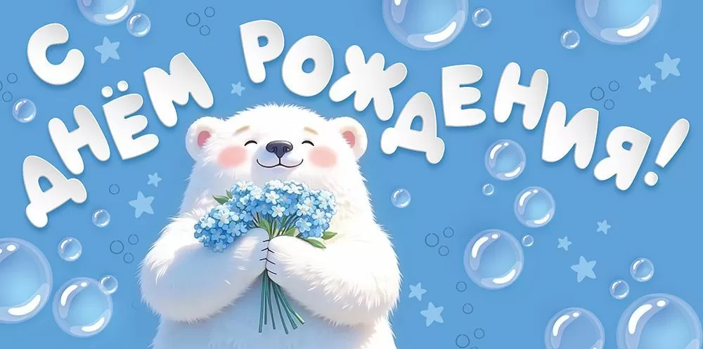 Конверт для денег «С Днем рождения!» (мишка на голубом фоне)