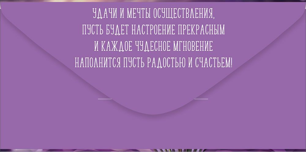 Конверт для денег формата евро предназначен для оформления денежного подарка к дню рождения и ориентирован на использование в розничной продаже и в оптовых поставках для торговых сетей, сувенирных отделов и корпоративных закупок. Изделие изготовлено из плотного картона, что обеспечивает стабильную геометрию, устойчивость к деформации при транспортировке и хранении, а также аккуратный внешний вид при передаче получателю. Готовый размер конверта составляет 168 × 84 мм, что позволяет размещать в нем стандартные денежные купюры без сгибов и смятия, а также при необходимости вложить подарочный сертификат или небольшую поздравительную записку. Лицевая сторона оформлена полноцветным изображением букета пионов в фиолетово-розовой гамме на мягком размытом фоне, дополненным поздравительным текстом «С днём рождения!» и тегом с надписью «Счастья», что делает конверт тематически законченным и не требует дополнительного оформления. Печать выполнена с применением блесток в лаке радужных, создающих легкий перелив при изменении угла освещения и подчеркивающих отдельные элементы композиции, при этом поверхность остается достаточно гладкой для безопасной укладки в стопки и упаковки. Внутренняя часть конверта содержит текстовое поздравление и поле для подписи, что удобно при использовании в рознице и экономит время при подготовке подарка. Конверт поставляется в упаковках по 10, что оптимально для выкладки на витрине, формирования ассортимента по тематикам и расчетов при оптовой закупке. Плотный картон и качественная отделка обеспечивают устойчивость к истиранию красочного слоя при многократном перекладывании, а также сохраняют читаемость текста и яркость изображения в течение всего срока реализации. Конверт подходит для использования в качестве универсального решения для поздравлений как в личных, так и в деловых ситуациях, может включаться в линейку праздничной продукции и комбинироваться с открытками и пакетами схожей цветовой гаммы.