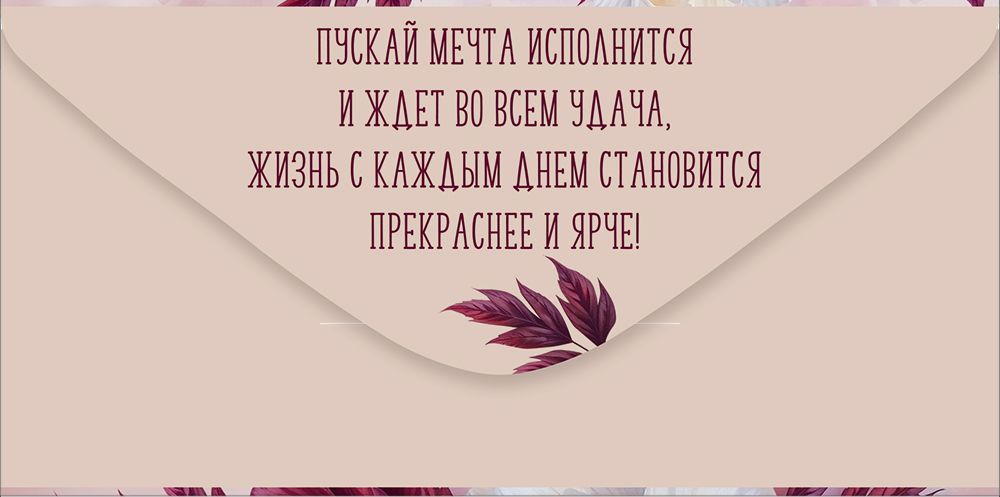 Конверт для денег формата «Евро» предназначен для оформления денежного подарка на день рождения и удобен для включения в ассортимент торговых точек, интернет-магазинов и праздничных отделов. Изделие выполнено из плотного картона, что обеспечивает устойчивость к деформации при транспортировке и хранении, а также сохраняет форму при размещении внутри купюр и поздравительных вкладышей. Готовый размер конверта 168 × 84 мм позволяет размещать стандартные банкноты без сгибов и подходит для большинства подарочных сертификатов и вложений аналогичного формата. Лицевая сторона оформлена полноцветным изображением крупных пионов в бордово-розовой и белой гамме с детализированной прорисовкой лепестков и листьев, дополнена поздравительным текстом «С Днем рождения!», что исключает необходимость в дополнительной открытке при бюджетном оформлении подарка. Печать выполнена с использованием радужных блесток в лаке, создающих мерцание отдельных элементов композиции при искусственном и дневном освещении; при этом лаковый слой служит дополнительной защитой изображения от истирания при частом контакте и трении в упаковке. Внутренняя сторона предусматривает зону для краткого личного пожелания и подписи, что удобно для розничного пользователя и позволяет унифицировать позицию в оптовом заказе под разные категории дарителей. Конверт рассчитан на использование в стандартных торговых витринах, кассовых зонах и настольных дисплеях, компактно размещается в коробах и лотках, что облегчает выкладку и инвентаризацию. В упаковке 10 изделий, что удобно для формирования мелкооптовых партий, поддержания стабильного остатка и планирования закупок с учетом сезонного роста спроса на поздравительные аксессуары ко дню рождения.
