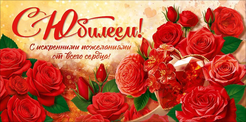 Конверт для денег «С Юбилеем!» (красные розы)