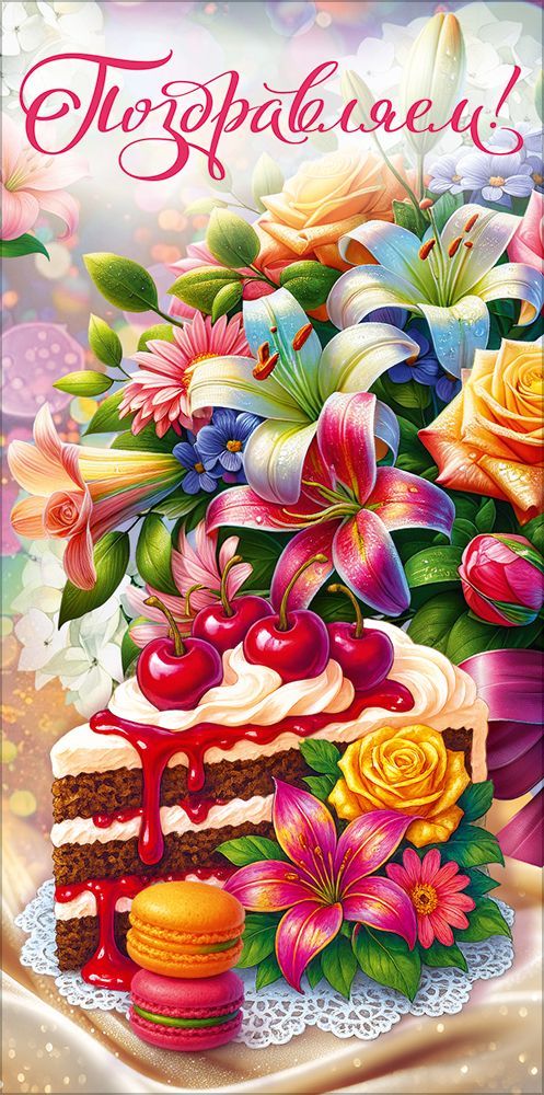 Конверт для денег «Поздравляем!» (торт, цветы)