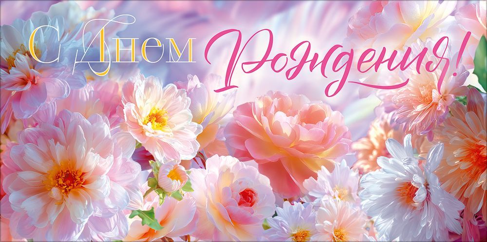 Конверт для денег «С Днем Рождения!» (нежные цветы)