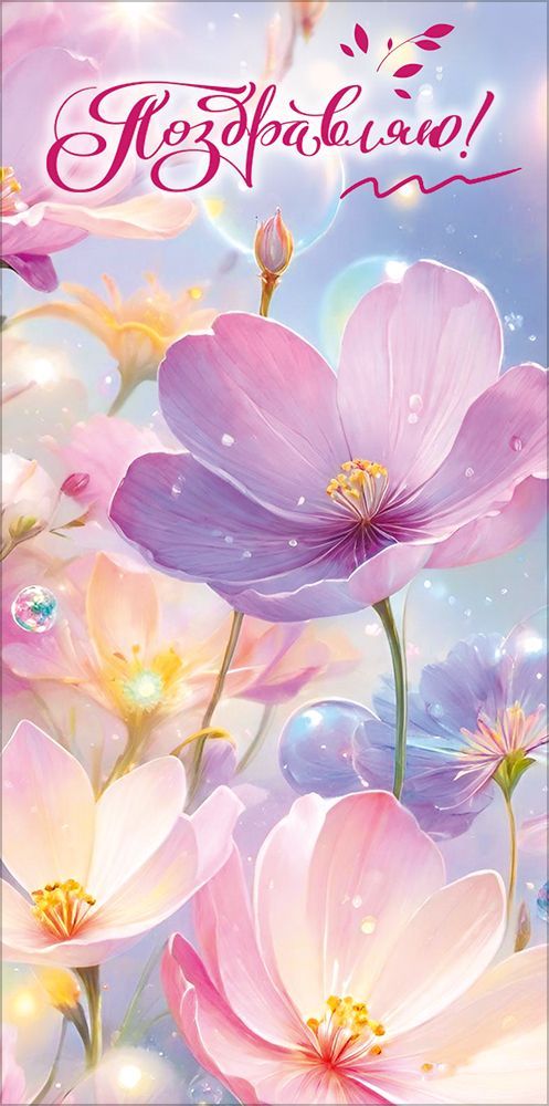 Конверт для денег формата «Евро» предназначен для оформления денежных подарков и сертификатов в розничной и корпоративной сфере. Изделие выполнено из плотного картона, устойчивого к деформации при транспортировке и хранении, что удобно при оптовых поставках и выкладке в торговом зале. Готовый размер конверта 168 × 84 мм обеспечивает совместимость с большинством стандартных купюр и позволяет использовать изделие в качестве универсального упаковочного решения для денежных подарков на различные поводы. На лицевой стороне размещена цветочная композиция в мягкой пастельной гамме с крупными лепестками и фоном с воздушными бликами; в верхней части расположен поздравительный текст «Поздравляю!», что делает конверт применимым для дня рождения, юбилея, семейных торжеств и официальных поздравлений. Конверт имеет фигурную вырубку, за счет чего аккуратно формируется линия клапана и обеспечивается удобное открывание без повреждения основы. Отделка выполнена с использованием радужных блесток в лаке, придающих изображению дополнительный объем и световой эффект; покрытие фиксирует декоративный слой и снижает риск осыпания при многократном контакте, что важно при хранении в коробах и кассетах. Внутренняя часть рассчитана на размещение денежных купюр и краткого письменного поздравления; печатный текст позволяет использовать изделие без дополнительной полиграфической доработки, что сокращает время подготовки к продаже и вручению. Плотный картон сохраняет форму конверта при укладке в стеллажи и транспортные короба, обеспечивая стабильный товарный вид партии. В упаковке 10 конвертов, что удобно для формирования оптовых заказов, планирования остатков и пополнения ассортимента в сезон повышенного спроса на поздравительную продукцию.