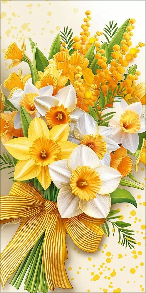 Конверт для денег без надписи (букет из нарциссов и мимозы)