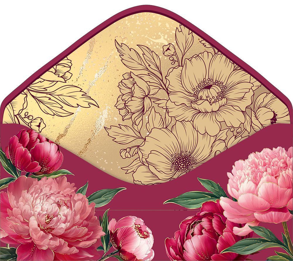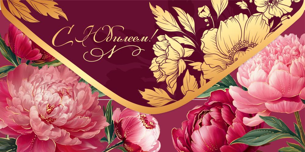 Конверт для денег формата евро предназначен для оформления денежного подарка к юбилею и ориентирован на использование в розничной продаже и оптовых поставках для магазинов подарочной продукции, канцелярии и сувенирных отделов. Изделие выполнено из плотного картона, обеспечивающего стабильную форму, износостойкость сгибов и сохранность вложения при транспортировке и хранении. Готовый размер конверта составляет 168 × 84 мм, что соответствует стандартным евроразмерам и позволяет удобно размещать как купюры национальных и иностранных валют, так и подарочные сертификаты аналогичного формата. Конверт имеет фигурную вырубку, за счет которой формируется аккуратный декоративный клапан и удобный доступ к вложению без деформации краев. Двустороннее изображение с фронтальной и оборотной печатью выполнено в насыщенной бордово‑розовой гамме с крупными цветочными элементами; лицевая сторона содержит поздравительный акцент к юбилею, внутренняя сторона не имеет печатного текста и оставлена свободной для самостоятельного внесения надписей, что повышает универсальность использования в разных ситуациях и для различных получателей. Отделка включает нанесение лака soft-touch, создающего матовую бархатистую поверхность с тактильно приятным эффектом и дополнительной защитой от истирания, а также оформление отдельных элементов рисунка золотой фольгой, что усиливает визуальный контраст и читабельность декоративных деталей при искусственном и дневном освещении. Конструкция конверта рассчитана на машинную или ручную укладку, что удобно при формировании ассортимента в торговых точках и при фасовке. Плотный картон и стойкие краски позволяют сохранять внешний вид при длительном хранении на витрине, в стеллажах или складских коробах, а компактные габариты обеспечивают рациональное использование полочного пространства. В упаковке 10 штук, что удобно для планирования закупок, формирования выкладки по сериям и поддержания стабильного товарного запаса.