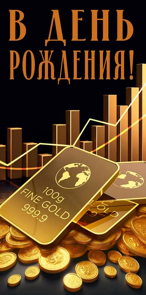 Поздравительный конверт для денег «В День рождения!» с ярким дизайном преобразит любое торжество. Интересная композиция представляет собой изображение графика роста, который символизирует движение только вперед. На переднем плане – гора золота, как символ благополучия и процветания. Сочетание черных и золотых оттенков делает внешний вид конверта дорогим и статусным. Также внутри находится текст с приятными пожеланиями. Данный дизайнерский конверт для денег идеально подойдет в качестве основного подарка или как приятное дополнение к нему. Внутрь можно поместить любую денежную сумму, подарочный сертификат или билеты на концерт. Благодаря прочным материалам производства и качеству печати изделие удобно транспортировать и хранить – оно надолго сохранит свой яркий внешний вид, не помнется и не выцветет, что делает его не только хорошим подарком, но и прекрасным памятным сувениром!