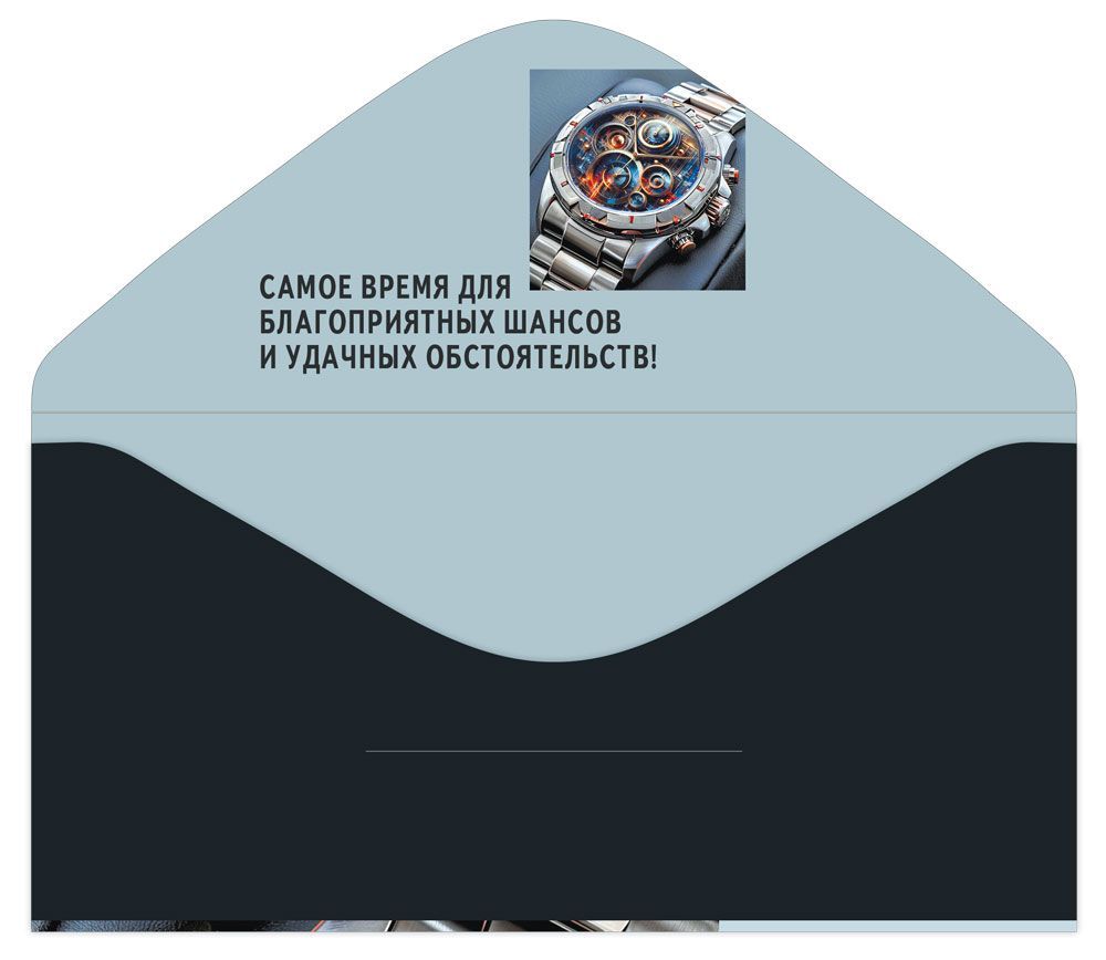 Конверт для денег формата «Евро» предназначен для вручения денежного подарка на день рождения и рассчитан на использование в розничной продаже и в оптовых поставках для магазинов подарков, канцелярии и сувенирной продукции. Изделие изготовлено из плотного картона, что обеспечивает форму и устойчивость к механическим воздействиям при транспортировке и хранении, а также позволяет сохранять аккуратный внешний вид при многократном перекладывании и выкладке в торговом зале. Габариты готового конверта 168 × 84 мм соответствуют стандартному размеру банкнот и сертификатов, благодаря чему купюры размещаются внутри без сгибов и деформации. На лицевой стороне размещено тематическое изображение наручных часов с детализированным циферблатом в современном технологичном стиле, дополненное крупной поздравительной надписью «С ДНЕМ РОЖДЕНИЯ!», что делает изделие универсальным вариантом для мужской и нейтральной аудитории взрослого возраста. Конверт имеет внутренний текст-поздравление (с текстом), что позволяет использовать его без дополнительной открытки и сокращает ассортиментную нагрузку при закупке. В отделке применена фольга голографическая серебряная, создающая выразительные блики и усиленный декоративный эффект при искусственном и дневном освещении; такое решение повышает заметность товара на полке и делает внешний вид более презентабельным при сохранении умеренного расхода материалов. Поверхность картонной основы устойчива к истиранию и не выгорает при кратковременном воздействии света, что важно при длительном хранении на складе и открытой выкладке. Конверт совместим с большинством стандартных витринных и напольных стоек для подарочной продукции формата «Евро», удобен для штабелирования и упаковки в термоусадочную пленку или коробки. В одной упаковке предусмотрено 10 изделий, что облегчает планирование закупок, учет остатков и формирование ассортимента по тематике «День рождения» в торговых точках различного формата.