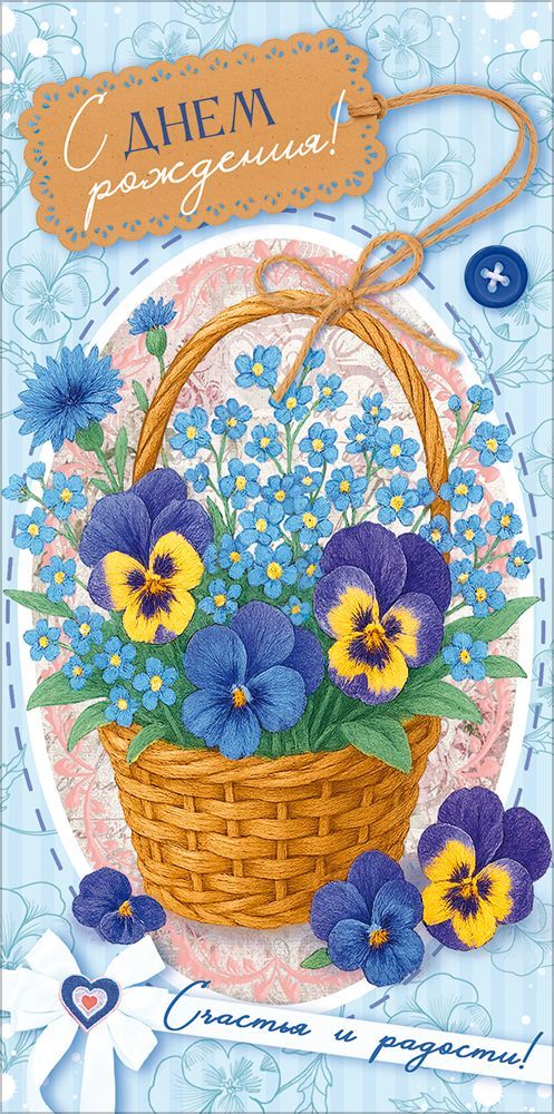Конверт для денег «С Днем Рождения!» (незабудки и анютины глазки в корзинке)