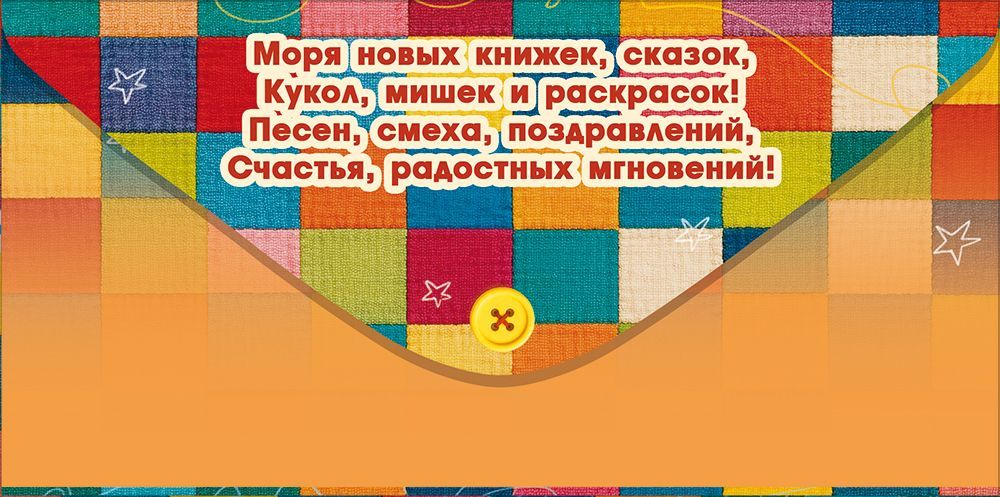 Конверт для денег формата «Евро» предназначен для оформления подарка в денежной форме, преимущественно к детским праздникам и мероприятиям, связанным с покупкой игрушек. Основа изделия выполнена из плотного картона, что обеспечивает стабильную геометрию, устойчивость к изгибам и удобство при хранении в стопках и коробах на складе. Размер готового конверта 168×84 мм позволяет закладывать стандартные купюры без сгиба, а также небольшие подарочные сертификаты. Оформление двустороннее: на лицевой стороне размещена яркая композиция с детскими игрушками, куклой, машинкой, мячом и надписью «На игрушки», обратная сторона выдержана в едином стиле и предназначена для размещения служебной информации магазина или краткого пожелания. Печатное изображение дополнено радужными блестками в лаке, которые создают выразительный декоративный эффект, при этом защитный лаковый слой повышает стойкость красочного покрытия к истиранию при транспортировке и выкладке. Внутри предусмотрен текст, позволяющий использовать конверт без дополнительной открытки, что сокращает ассортиментные позиции и упрощает закупку. Материал и конструкция рассчитаны на стандартные условия эксплуатации в розничных точках: конверт сохраняет форму при многократном перелистывании на витрине, подходит для размещения в настольных и настенных дисплеях, кассовых зонах, напольных стойках. Изделие удобно для оптового формирования ассортимента к детским дням рождения, утренникам, тематическим акциям в магазинах игрушек и детских товаров, так как дизайн легко сочетается с широким спектром подарочной упаковки и сопутствующей полиграфии. В упаковке 10 штук, что позволяет оптимизировать учет и фасовку при оптовых поставках и обеспечивает удобный контроль остатков на складе и в торговом зале.