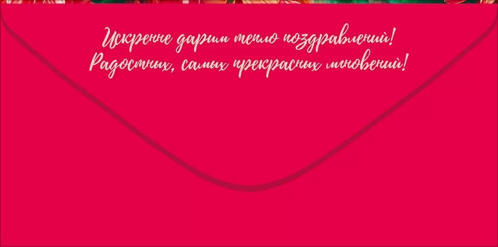 Поздравительный конверт для денег «Поздравляем!» с чудесным дизайном преобразит любое торжество. Изделие украшено изображениями ярких цветов с живыми тонкими лепестками, которые образуют необычный узор и замысловатую композицию. Полупрозрачная плашка в виде мазка краски подчеркивает поздравительную надпись. Насыщенные сочные оттенки составляют необычайно красочную композицию. Также внутри находится текст с приятными пожеланиями. Данный дизайнерский конверт для денег идеально подойдет в качестве основного подарка или как приятное дополнение к нему. Внутрь можно поместить любую денежную сумму, подарочный сертификат или билеты на концерт. Благодаря прочным материалам производства и качеству печати изделие удобно транспортировать и хранить – оно надолго сохранит свой яркий внешний вид, не помнется и не выцветет, что делает его не только хорошим подарком, но и прекрасным памятным сувениром!