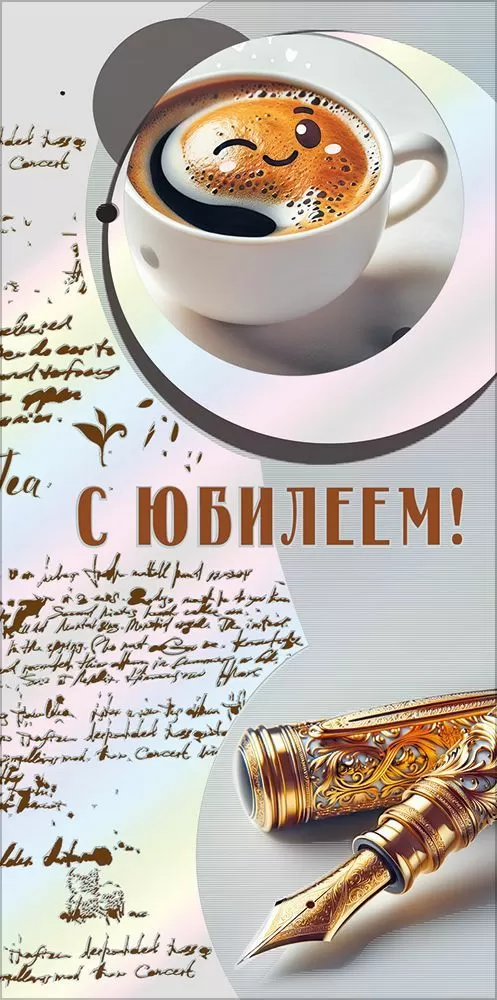 Поздравительный конверт для денег «С юбилеем!» с интересным дизайном преобразит любое торжество. Основу композиции составляет мягкий градиент нежных оттенков. Неожиданный круглый элемент в верхней части конверта изображает чашку с кофе – символ бодрости и уюта. Изображение узорчатой золотой перьевой ручки и каллиграфический текст в кофейных оттенках навевают на мысли о творчестве. Также внутри находится текст с приятными пожеланиями. Данный дизайнерский конверт для денег идеально подойдет в качестве основного подарка или как приятное дополнение к нему. Внутрь можно поместить любую денежную сумму, подарочный сертификат или билеты на концерт. Благодаря прочным материалам производства и качеству печати изделие удобно транспортировать и хранить – оно надолго сохранит свой яркий внешний вид, не помнется и не выцветет, что делает его не только хорошим подарком, но и прекрасным памятным сувениром!