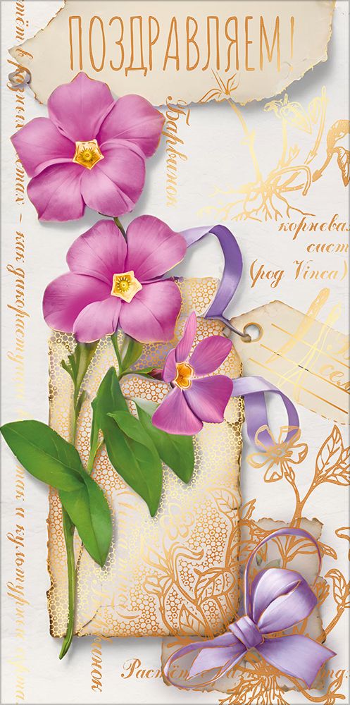 Конверт для денег формата евро предназначен для оформления денежных подарков и вложения подарочных сертификатов. Изделие изготовлено из плотного картона, что обеспечивает стабильную геометрию, устойчивость к деформации при транспортировке и хранении, а также аккуратный внешний вид при передаче получателю. Двустороннее изображение выполнено в светлой пастельной гамме: на лицевой стороне размещена композиция с крупными цветами сиреневых оттенков, декоративной подложкой под золото и бантами, на обороте дизайн выдержан в едином стиле и позволяет сохранить целостность оформления при выкладке на витрине. Золотая фольга используется для акцентирования надписи «Поздравляем!» и отдельных элементов орнамента, создавая четкий, хорошо читаемый текст и устойчивый к истиранию декоративный слой при бережной эксплуатации. Внутри предусмотрен текст поздравительного характера и поле для личной подписи, что упрощает использование в розничном сегменте как готового решения без необходимости дополнительного оформления. Размер готового изделия 168×84 мм обеспечивает совместимость с большинством стандартных денежных купюр и сертификатов, удобно размещается в витринных кассетах и напольных стойках. Конверт рассчитан на использование в качестве универсального поздравительного носителя для дней рождения, юбилеев, семейных и календарных праздников, подходит для формирования ассортимента сувенирной и подарочной группы. Плотный картонный материал и компактный формат позволяют упаковывать продукцию стогами, оптимизируя складское хранение и транспортные расходы, а также обеспечивают стабильное качество при оптовых поставках. В упаковке 10 штук, что удобно при планировании закупок, формировании выкладки и контроле остатков на складе и в торговом зале.