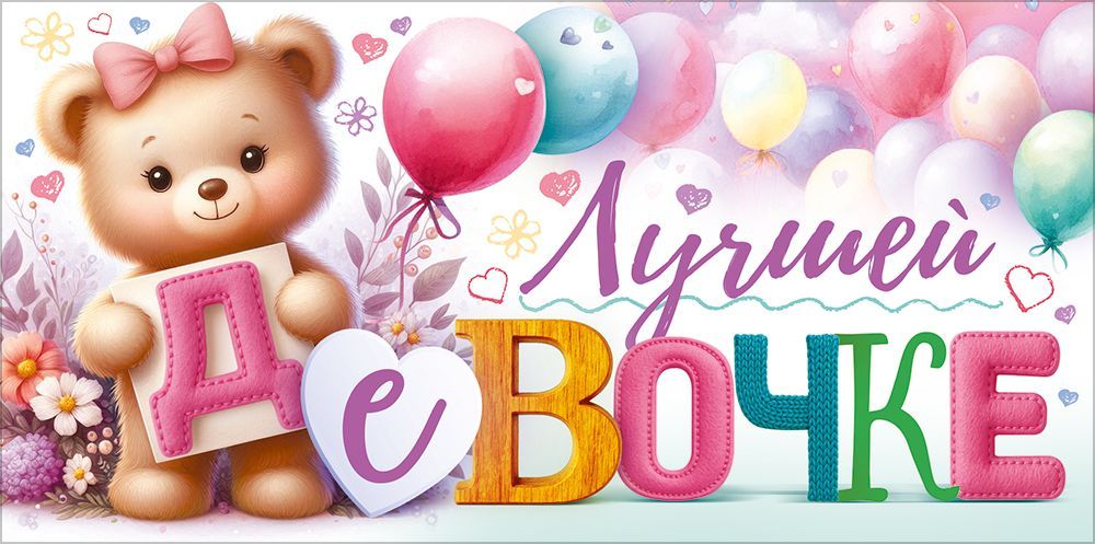 Конверт для денег «Лучшей девочке» (медвежонок и воздушные шары)