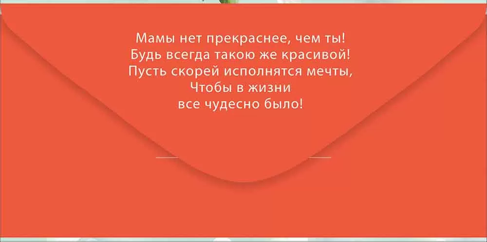 Подарочный конверт изготовлен из плотного картона. Материал хорошо держит форму и не помнется при транспортировке. Сверху на картонной основе отпечатано красочное полноцветное изображение. На обратной стороне есть теплые пожелания.