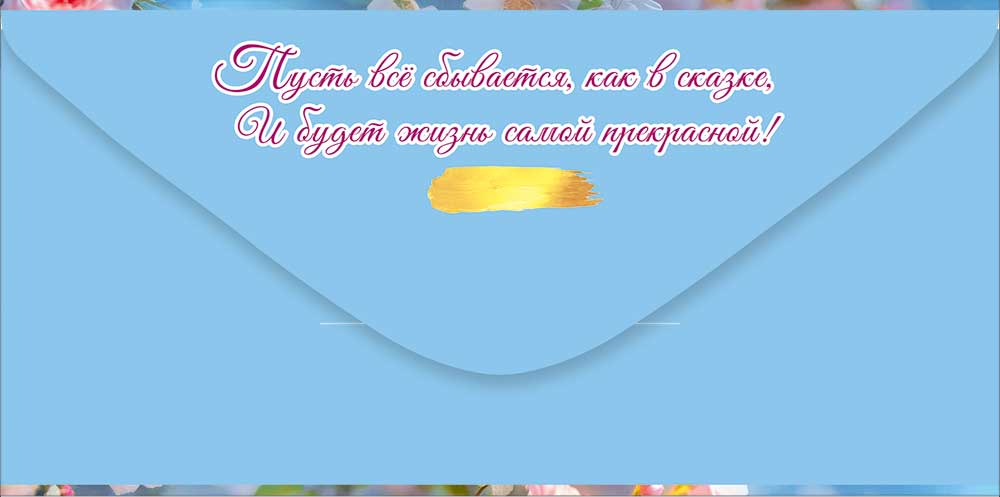 Конверт для денег формата «Евро» предназначен для оформления денежных подарков к дню рождения и ориентирован на использование в розничной продаже и оптовых поставках для магазинов сувенирной и канцелярской продукции. Изделие изготовлено из плотного картона, что обеспечивает стабильную геометрию, аккуратный внешний вид и достаточную жесткость при размещении купюр стандартных размеров. Готовый конверт имеет длину 168 мм и ширину 84 мм, параметры подобраны для удобного размещения большинства банкнот без сгиба и позволяют использовать изделие в составе унифицированного ассортимента подарочной продукции. Фигурная вырубка формирует декоративный контур и аккуратный клапан, упрощающий открывание и закрывание конверта и обеспечивающий надежную фиксацию вложения без дополнительных элементов. Лицевая сторона оформлена полноцветным изображением с цветочной композицией в розово-голубой гамме и поздравительным текстом «В день рождения», а также надписью «счастья» на декоративной бирке, что делает конверт готовым решением для дарения без необходимости дополнительного оформления. Наличие текста избавляет от необходимости подбора отдельной открытки и позволяет использовать конверт как самостоятельный поздравительный элемент. Отделка выполнена глянцевым УФ-лаком, который подчеркивает цветовые акценты, повышает стойкость печати к истиранию и воздействию света, снижает риск появления царапин при транспортировке и хранении, что важно при оптовых поставках и выкладке на витрине. Поверхность конверта устойчива к умеренным механическим нагрузкам, не деформируется при стандартных условиях эксплуатации и подходит для хранения в кассетах, напольных и настольных стойках. Конверт удобен для использования в качестве универсального решения для поздравлений в офисе, торговых и сервисных компаниях, а также в домашнем круге, что облегчает формирование сбалансированного ассортимента для разных форматов розничной торговли. Количество в упаковке: 10.