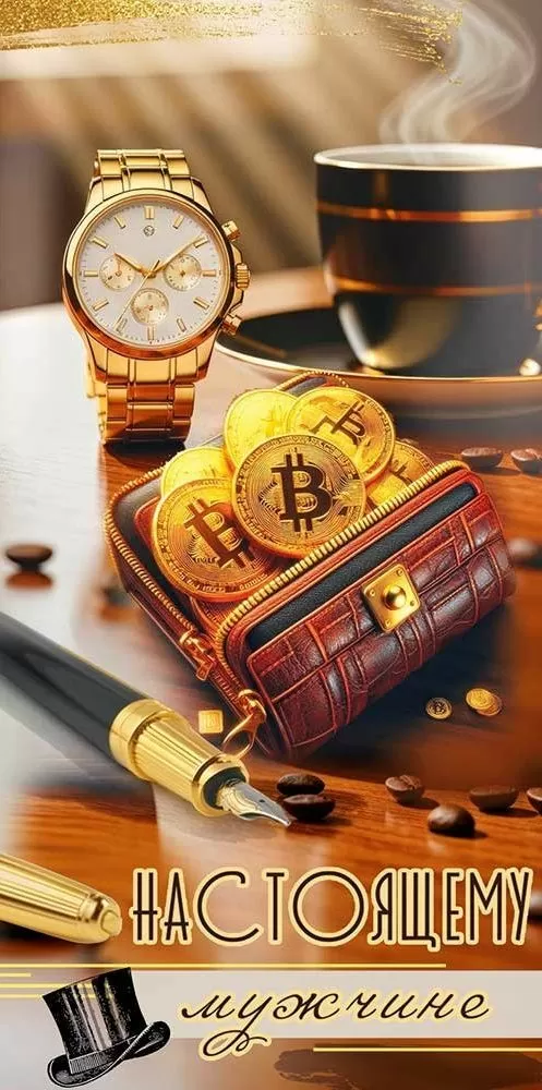 Поздравительный конверт для денег «Настоящему мужчине» с очень необычным дизайном преобразит любое торжество. Изделие украшено композицией, составленной из различных атрибутов успешной, благополучной жизни. Среди них основным акцентом является портмоне, набитое до отказа золотыми монетами. Поддерживают деловой сюжет изображения перьевой ручки и наручных часов. Большая чашка с дымящимся напитком придает картинке домашнего уюта и бодрого настроения. Цветовая гамма выгодно сочетает между собой золотые, кофейные и винные оттенки. Также внутри находится текст с приятными пожеланиями. Данный дизайнерский конверт для денег идеально подойдет в качестве основного подарка или как приятное дополнение к нему. Внутрь можно поместить любую денежную сумму, подарочный сертификат или билеты на концерт. Благодаря прочным материалам производства и качеству печати изделие удобно транспортировать и хранить – оно надолго сохранит свой яркий внешний вид, не помнется и не выцветет, что делает его не только хорошим подарком, но и прекрасным памятным сувениром!