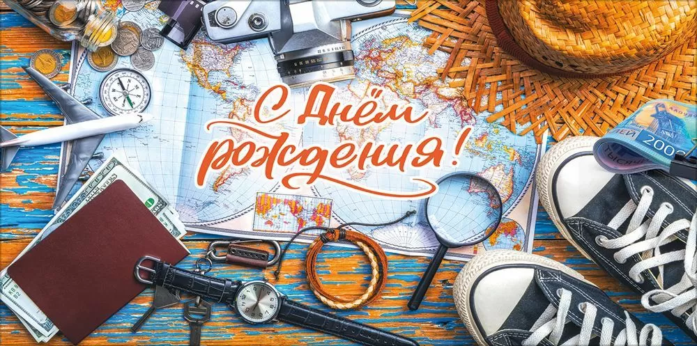 Конверт для денег «С Днём рождения!» (аксессуары путешественника)