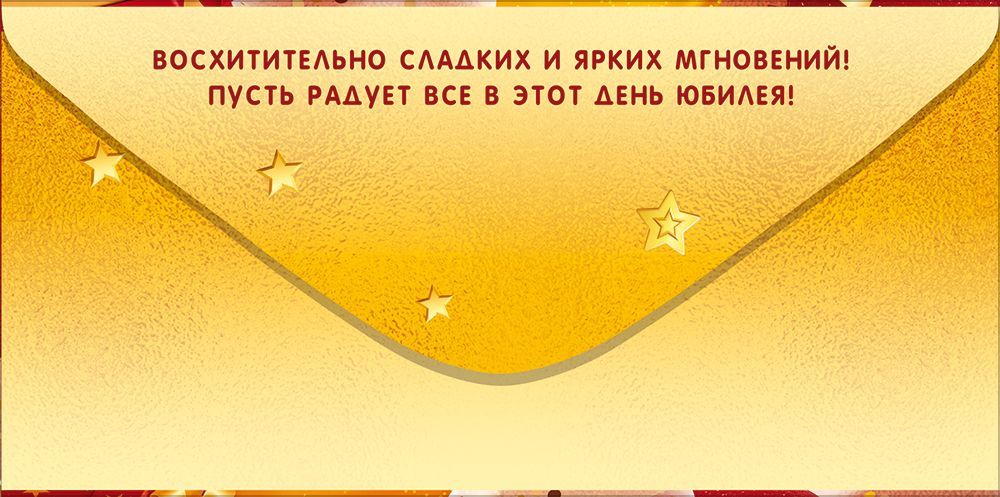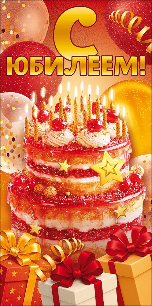 Конверт для денег формата «Евро» предназначен для оформления денежных подарков к юбилею и включения в ассортимент поздравительной продукции для розничных и оптовых продаж. Изделие изготовлено из плотного картона, обеспечивающего достаточную жесткость, устойчивость к изгибам и сохранность формы при транспортировке и хранении в коробах и на витринах. Готовый размер конверта 168 × 84 мм позволяет размещать внутри стандартные купюры без сгибов, а также вложить поздравительную записку или фирменную визитку магазина. Лицевая сторона оформлена полноцветным изображением многоярусного торта со свечами, подарочных коробок и праздничных шаров в красно‑золотой гамме, с крупной надписью «С юбилеем!», что делает конверт тематически привязанным к юбилейным датам и удобным для планирования ассортимента по праздничным категориям. Дополнительно использованы блестки в лаке золотые, создающие мерцающие акценты на отдельных элементах рисунка; такая отделка повышает износостойкость печати, уменьшает риск истирания изображения при частом перекладывании и придает поверхности легкий защитный слой. Внутри предусмотрен печатный поздравительный текст, что сокращает время обслуживания в рознице и упрощает выбор конечному покупателю: изделие готово к вручению сразу после подписания. Конверты поставляются по 10 штук, что удобно для формирования заказов, учета остатков и выкладки по фасовочным единицам. Плоская форма и стандартный формат позволяют компактно хранить продукцию в стеллажах, напольных дисплеях и настольных стойках, а также оптимизировать транспортные расходы при оптовых поставках. Такой конверт рационально включать в базовый ассортимент к сезонным и круглогодичным юбилейным мероприятиям в магазинах подарков, канцелярии и неспециализированной рознице.