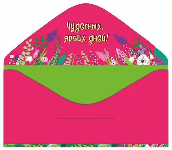 После долгой зимы очень хочется сочных красок и живописных эмоций! Яркий конверт для денег поможет красиво оформить денежный презент к 8 Марта! Очаровательный принт дополнен сияющей фольгой и теплыми пожеланиями. Изображение нанесено с использованием флуоресцентного пантона. Метод позволяет получить невероятно красочный рисунок. Такой конверт сделает подарок необычным и запоминающимся! Идеальный сюрприз на Международный женский день!