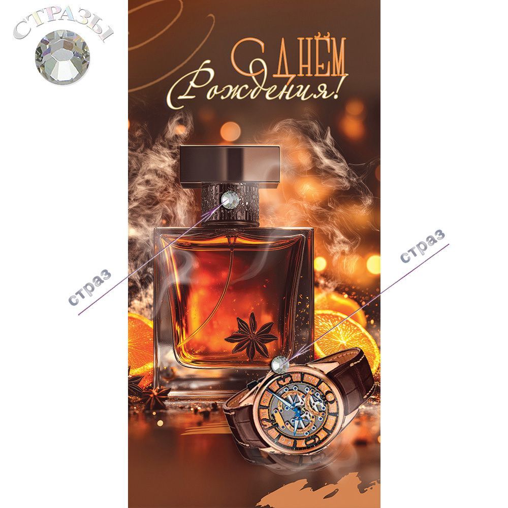 Конверт для денег формата евро предназначен для оформления денежного подарка на день рождения и ориентирован на использование в розничной продаже и оптовых поставках для магазинов подарочной продукции, книжных сетей и сувенирных отделов. Изделие выполнено из плотного картона, что обеспечивает стабильную геометрию, устойчивость к деформации при транспортировке и хранении, а также аккуратный внешний вид при передаче получателю. Размер готового конверта 168 × 84 мм позволяет удобно размещать внутри купюры стандартного европейского и российского формата без сгибов, что важно при массовых закупках для унификации ассортимента. На лицевой стороне размещена полноцветная печать с изображением флакона парфюма и наручных часов в теплой коричнево-оранжевой гамме, дополненная поздравительным текстом «С Днём Рождения!», что делает изделие тематически законченным и не требует дополнительного оформления. Конверт имеет фигурную вырубку, за счет которой формируется аккуратный клапан и удобный доступ к вложению; конструкция рассчитана на многократное открывание и закрывание без быстрого износа сгибов. Декорирование стразами придает изделию акцентные блестящие элементы, хорошо заметные при витринной выкладке и искусственном освещении, что повышает привлекательность позиции в ассортиментной матрице. Внутри предусмотрено поле с печатным поздравительным текстом и свободным местом для личной подписи, что удобно для розничного покупателя и снижает потребность в дополнительных открытках. Конверт поставляется в упаковке по 10 штук, что облегчает планирование закупок, учет остатков и формирование выкладки по фасовочным единицам. Плотный картонный материал и компактные размеры способствуют рациональному размещению товара на полке и в складской таре, а универсальный мужской дизайн с нейтральной цветовой гаммой подходит для широкого круга получателей, что делает данный конверт практичной позицией для пополнения базового подарочного ассортимента.