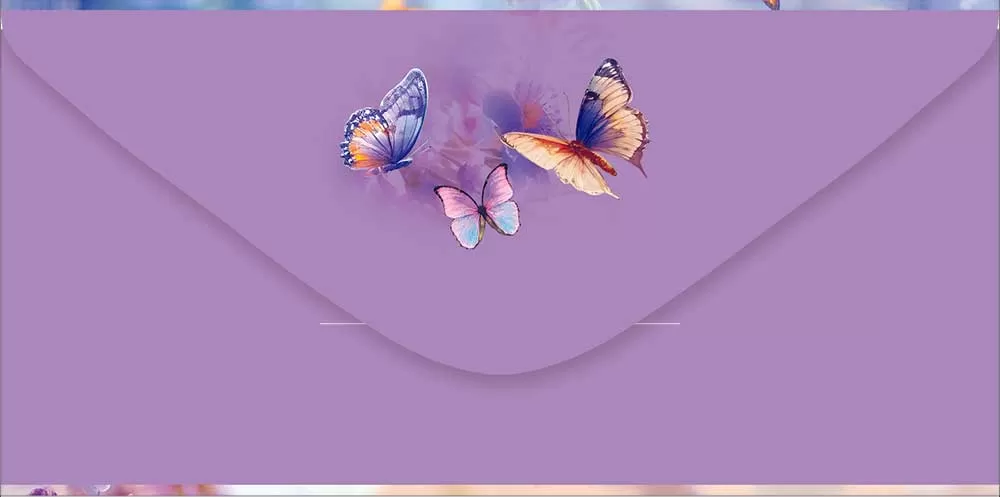 Конверт для денег без надписи (букет полевых цветов в чашке с блюдцем, бабочки)