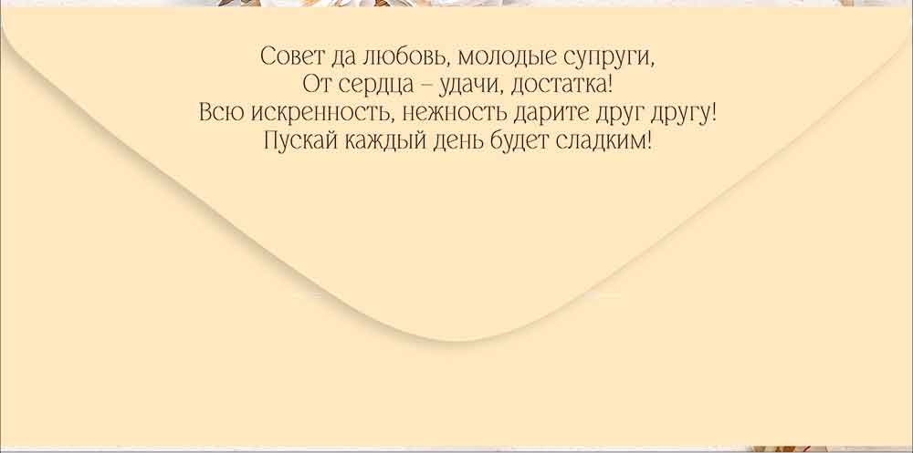 Конверт для денег формата евро предназначен для оформления денежных подарков к свадьбе и рассчитан на использование в розничной продаже и оптовых поставках для магазинов подарочной и канцелярской продукции. Изделие изготовлено из плотного картона, что обеспечивает форму и устойчивость к деформации при хранении, транспортировке и передаче получателю. Готовый размер конверта составляет 168 × 84 мм, формат удобен для размещения стандартных банкнот без сгибов, а также для вложения короткого поздравления на отдельной карточке. На лицевой стороне размещена тематическая свадебная композиция с цветами, обручальными кольцами и бокалами, дополненная поздравительным текстом «С Днём свадьбы!», что позволяет использовать конверт как самостоятельный элемент подарочного оформления без необходимости в дополнительной открытке. В оформлении применены радужные блестки в лаке, создающие аккуратный мерцающий эффект и подчёркивающие отдельные фрагменты изображения; покрытие устойчиво к осыпанию при бережной эксплуатации и не требует специальных условий хранения. Плотный картон хорошо переносит укладку в коробки и транспортные лотки, сохраняя геометрию изделия при крупнооптовых и мелкооптовых поставках, а также при выкладке в торговом зале на полках и в настольных дисплеях. Конверт подходит для оформления подарка как от частных лиц, так и от организаций при вручении денежных премий и поздравлений сотрудникам или партнёрам на свадебные торжества. Нейтральная по цветовой гамме и сюжету графика обеспечивает совместимость с различными видами подарочной упаковки и букетов, что удобно при формировании ассортимента к свадебному сезону. В упаковке содержится 10 конвертов, что облегчает планирование закупок, учёт остатков и формирование витрины с однородным оформлением.