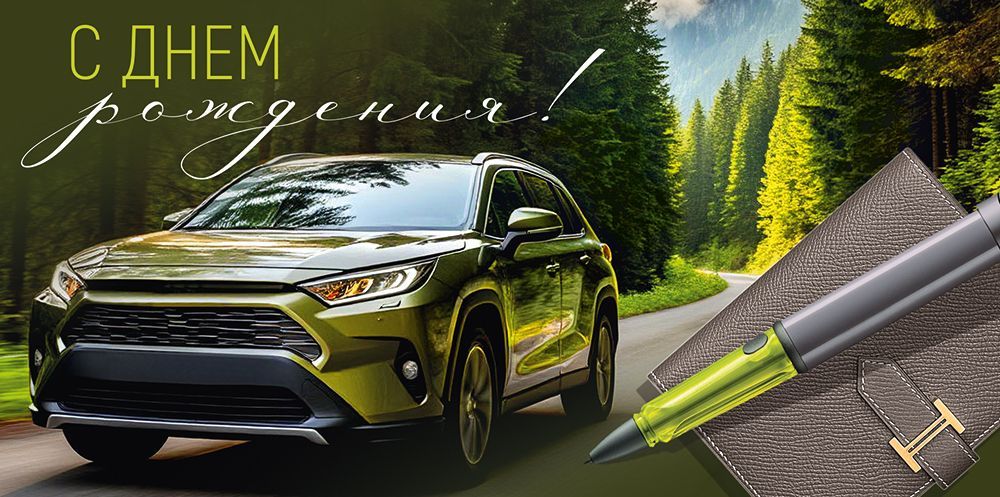 Конверт для денег «С Днем рождения!» (машина, бумажник, ручка)