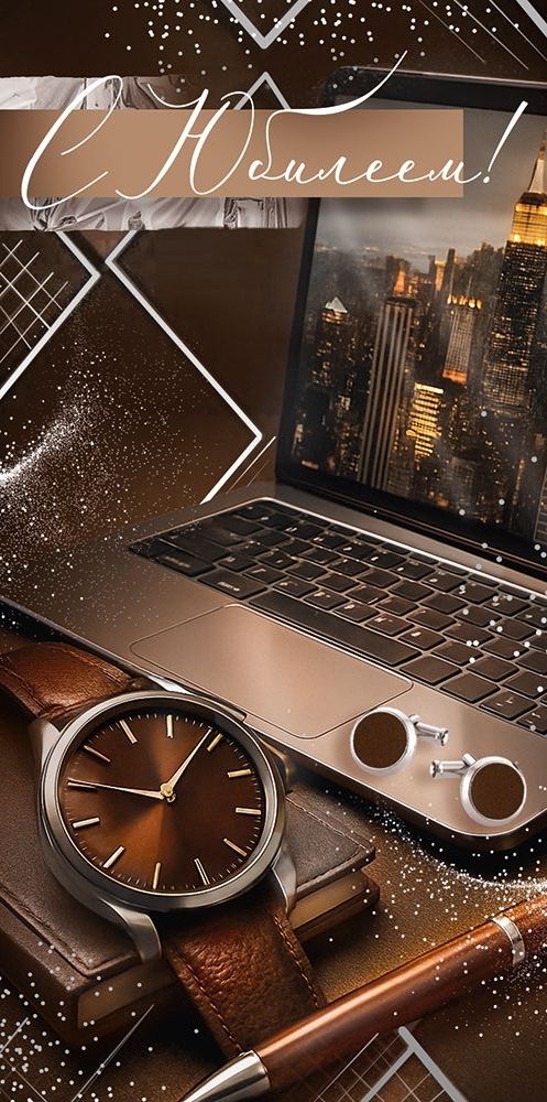Конверт для денег «С Юбилеем!» (ноутбук, часы)