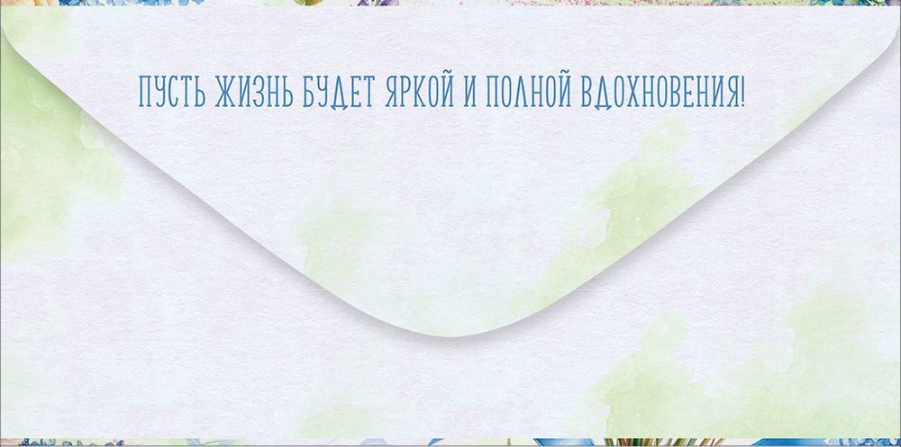 Конверт для денег формата евро изготовлен из плотного картона, что обеспечивает устойчивость к деформации при транспортировке и хранении, а также сохраняет форму изделия при вложении купюр стандартных размеров. Готовое изделие имеет длину 168 мм и ширину 84 мм, что удобно для использования в унифицированных витринах, напольных и настольных дисплеях, а также при фасовке партиями в коробки и транспортные короба. На лицевой стороне размещена полноцветная композиция с букетом роз, ромашек и полевых цветов на светлом фоне, дополненная надписью «Поздравляем!» и круглой подвеской с текстом «Счастья», что делает конверт универсальным вариантом для вручения денежных подарков на дни рождения, семейные торжества, юбилеи, профессиональные и календарные праздники. Поверхность оформлена радужными блестками в лаке, за счет чего отдельные элементы рисунка имеют лёгкий перелив при искусственном и дневном освещении; лаковый слой дополнительно защищает изображение от истирания при массовой выкладке и частом контакте с руками. Картонная основа хорошо держит сгибы, не растрескивается по линии фальца и сохраняет аккуратный внешний вид при кратковременном хранении в сумке или конвертнице. Внутренний блок рассчитан на размещение банкнот и краткого письменного пожелания; наличие текста на лицевой стороне позволяет использовать конверт без дополнительной открытки, что удобно как для конечного покупателя, так и для организованных закупок к мероприятиям. Упаковка содержит 10 одинаковых конвертов, что облегчает планирование складских остатков, формирование однородных партий и оптимизацию полочного пространства при розничной продаже и оптовых поставках.