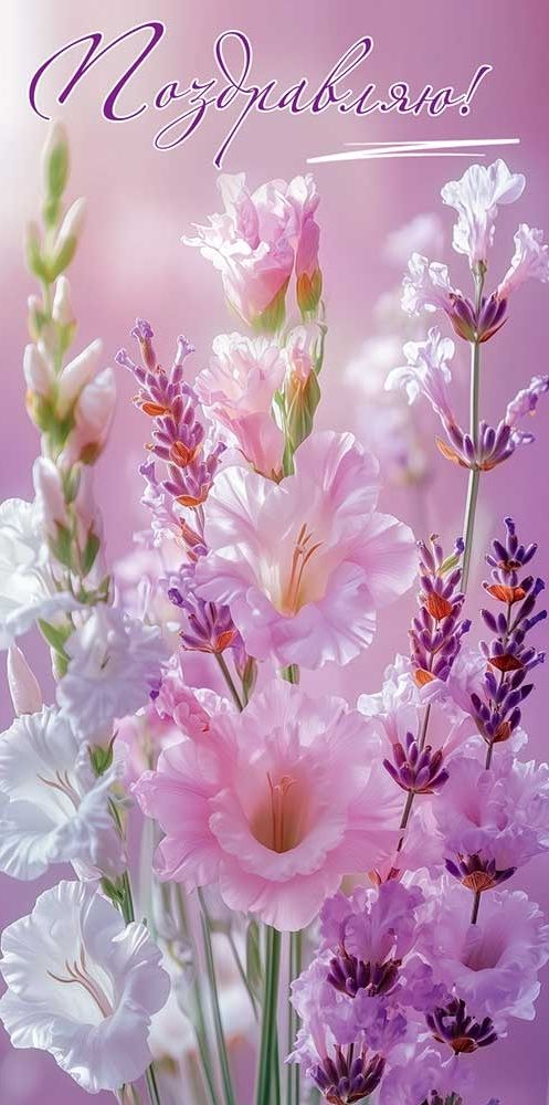 Конверт для денег «Поздравляю!» (белые, розовые и лиловые гладиолусы)