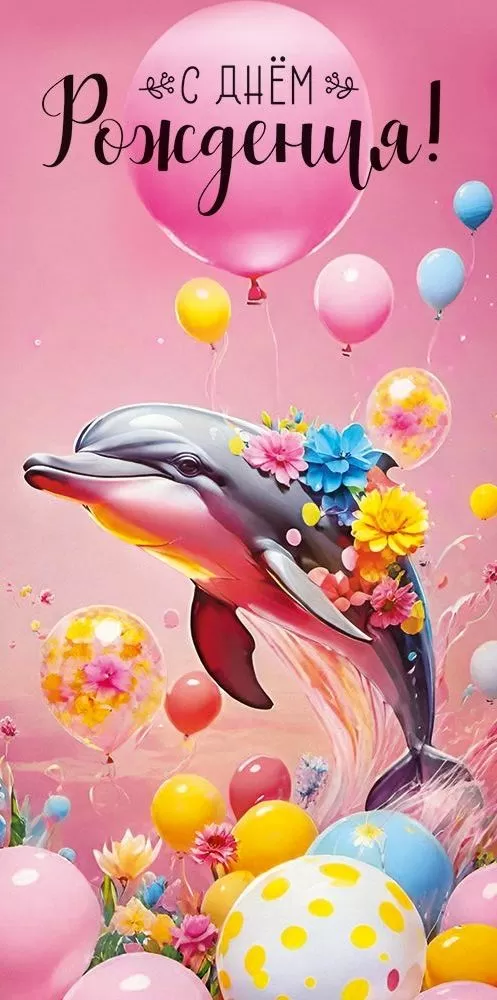 Поздравительный конверт для денег «С днем рождения!» обязательно порадует именинницу или именинника своим ярким дизайном! Изображенный в центре дельфин окружен разноцветными воздушными шариками и различными цветами. Розовый фон, детали в виде водных всплесков и отдельные прозрачные шарики с заключенными в них цветами оставляют после себя несколько «конфетное» послевкусие. Изделие выполнено из прочного материала и имеет высокое качество печати, что делает его отличным памятным сувениром, который еще долго сможет радовать получателя своим внешним видом. Во внутренней части напечатаны приятные пожелания, которые отлично дополнят вложенную в него денежную сумму, подарочный сертификат или билеты на концерт.