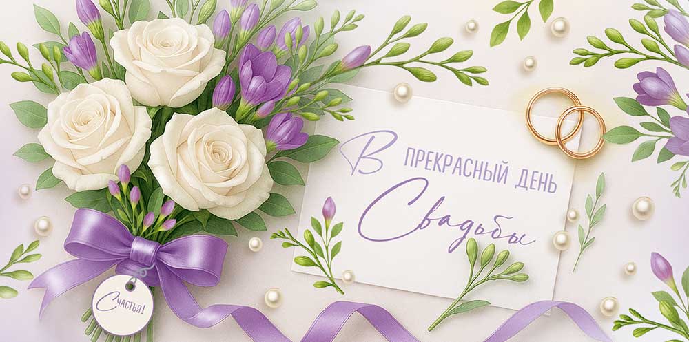 Конверт для денег формата «Евро» предназначен для оформления денежного подарка на свадьбу и удобен для включения в стандартные конвертные витрины и кассовые выкладки. Изделие выполнено из плотного картона, что обеспечивает устойчивость формы, аккуратный внешний вид и сохранность вложенных купюр при транспортировке и хранении. Готовый размер 168×84 мм позволяет свободно размещать купюры без сгибов и подходит для большинства распространённых валютных номиналов. Лицевая сторона оформлена свадебной композицией: букет из белых роз и фиолетовых цветов, декоративные зелёные элементы, ленты и кольца, что визуально подчёркивает тематику торжества и делает изделие универсальным решением для оформления подарка молодожёнам. На лицевой стороне нанесён поздравительный текст «В прекрасный день свадьбы», дополнительно присутствует тег с надписью «Счастья!», что избавляет от необходимости подбирать отдельную открытку: достаточно вписать персональное пожелание на внутренней стороне конверта. Поверхность изображения частично покрыта радужными блёстками в лаке, за счёт чего создаётся умеренный декоративный эффект, устойчивый к истиранию при нормальной эксплуатации и многократных перекладках в коробах и лотках. Конверт поставляется в количестве 10, что удобно для формирования базового свадебного ассортимента у оптовых и розничных продавцов, а также для использования в организациях, где требуется систематически оформлять денежные подарки сотрудникам или партнёрам. Плотный картонный материал позволяет хранить упаковки стопками без деформации, а единый формат облегчает учёт, выкладку и транспортировку. Изделие подходит для индивидуального вручения, вложения в подарочные наборы и использования совместно с подарочными пакетами стандартного размера.