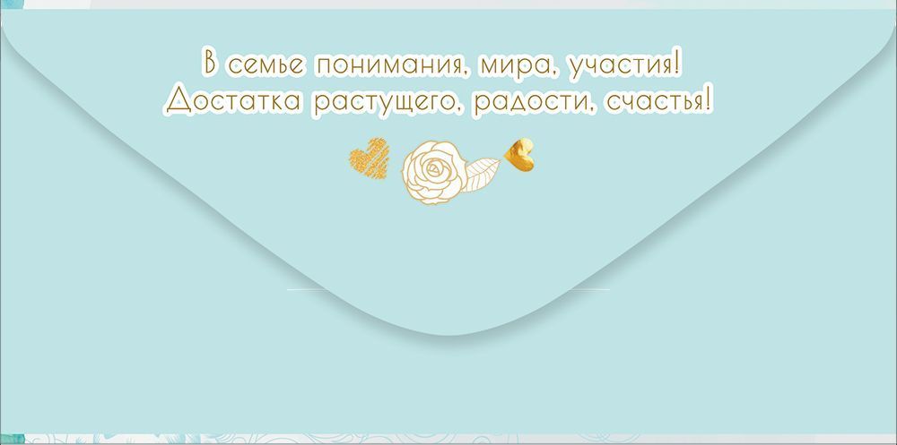 Конверт для денег формата «Евро» предназначен для оформления денежного подарка к свадьбе и ориентирован на использование в розничной продаже и оптовых поставках для сувенирной и канцелярской розницы. Изделие выполнено из плотного картона, что обеспечивает стабильную форму, аккуратный внешний вид и устойчивость к деформации при транспортировке и хранении. Габариты готового конверта 168×84 мм позволяют удобно размещать внутри купюры стандартного размера без сгибов, а также при необходимости вложить небольшую поздравительную записку. На лицевой стороне размещена тематическая композиция с бутылкой шампанского, бокалами и цветами, дополненная поздравительным текстом «С Днём свадьбы!» и пожеланиями, что сокращает время на подбор отдельной открытки и делает изделие готовым к вручению сразу после вложения подарка. Двустороннее изображение обеспечивает визуальную завершённость: оборотная сторона выдержана в едином стиле и подходит для экспозиции на витрине. Конверт имеет фигурную вырубку, за счёт чего край изделия образует декоративный контур, подчёркивающий праздничное назначение и выделяющий товар в ассортиментной выкладке. Отделка выполнена с применением золотых блёсток в лаке, создающих локальные акценты на элементах дизайна; декоративный слой устойчив к умеренному механическому воздействию и не осыпается при стандартных условиях перевозки и реализации. Материал и формат удобны для штабелирования, упаковки и хранения крупными партиями, что позволяет оптимизировать складские площади и транспортные расходы. Конверт поставляется по 10 штук, что упрощает планирование закупок и формирование полочного запаса для магазинов подарков, книжных и канцелярских отделов, а также для компаний, комплектующих корпоративные свадебные подарки сотрудникам и клиентам.