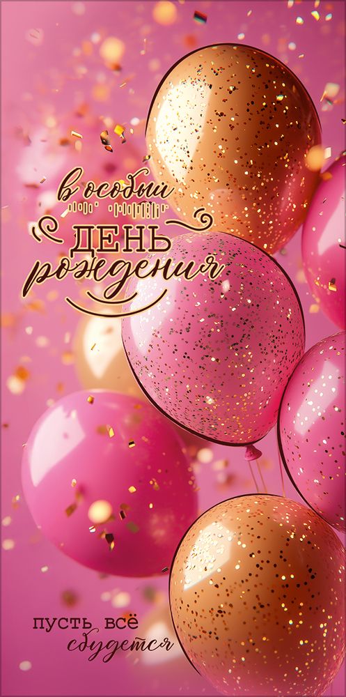 Конверт для денег «В особый День рождения. Пусть всё сбудется» (розовые и золотые шары)