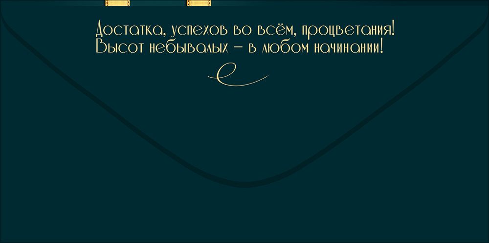 Конверт для денег формата «Евро» предназначен для безопасного и аккуратного вручения наличных средств или подарочных сертификатов и рассчитан на использование в розничной продаже и в оптовых поставках для торговых сетей, сувенирных отделов и корпоративных закупок. Изделие изготовлено из плотного картона, обеспечивающего устойчивость к изгибам и истиранию при транспортировке и хранении, что важно при размещении на витринах, в кассовой зоне и при длительном складском хранении крупной партии. Готовый размер конверта 168 × 84 мм соответствует стандартным денежным купюрам и большинству подарочных сертификатов, что упрощает формирование универсального ассортимента. На лицевой стороне размещено изображение подарочной ленты и объемного банта в золотисто-изумрудной гамме с декоративной табличкой и текстом «Подарок», что делает конверт уместным для дня рождения, юбилея, профессионального праздника, корпоративных мероприятий и других поводов. Фигурная вырубка формирует аккуратные контуры клапанов и внутренних элементов, облегчая вкладывание и извлечение денег без деформации купюр и сохраняя стабильную форму изделия при многократном открывании. Отделка выполнена с использованием золотых блесток в лаке, создающих аккуратные акценты по контуру ленты и декоративных элементов; лаковый слой дополнительно защищает печать от истирания, что снижает риск потери товарного вида при активной выкладке и перекомплектации. Наличие готового печатного текста избавляет конечного пользователя от необходимости подбора отдельной открытки и делает конверт самостоятельным подарочным решением, что удобно для точек продаж с ограниченной площадью. Благодаря стандартному формату и плотному картону конверты удобно штабелируются, не коробятся, могут поставляться и храниться в термоусадочной пленке или коробах без дополнительных прокладок. Количество в упаковке 10 обеспечивает удобство планирования оптовых закупок, позволяет формировать однородные выкладки и использовать изделие как базовую позицию в линейке универсальных подарочных конвертов.