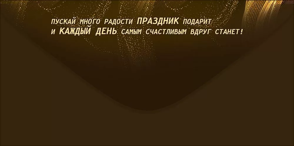 Дизайн выполнен в глубоких тёмных тонах с динамичными золотыми линиями, создающими эффект блестящего потокового узора. Такой стильный и современный вариант подойдёт для самых разных случаев — от делового подарка до поздравления близких.