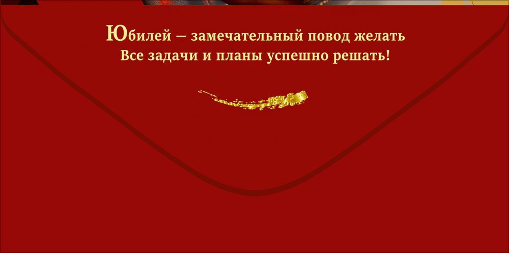 Конверт для денег «С Юбилеем! С уважением» (красный бант, компас, ручка, запонки, сигара, зажигалка)