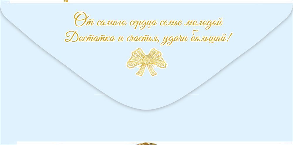 Конверт для денег формата евро предназначен для оформления безналичных и наличных подарков на свадьбу и может использоваться в розничной продаже, а также в оптовых поставках для магазинов подарочной и канцелярской группы. Изделие изготовлено из плотного картона, что обеспечивает стабильную геометрию и устойчивость к деформации при хранении и транспортировке, в том числе в многоярусной выкладке. Габариты готового конверта 168×84 мм позволяют удобно размещать стандартные денежные купюры и вложенные поздравительные карточки без сгибов. На лицевой стороне выполнена печать с тематическим свадебным оформлением: композиция из воздушных шаров в форме сердец, подарочной коробки и обручальных колец, дополненная надписью «С Днём свадьбы!», что упрощает выбор готового решения для свадебных мероприятий и делает изделие универсальным для широкого ассортимента сопутствующих товаров. Внутри предусмотрен текст-поздравление, позволяющий использовать конверт как самостоятельный элемент подарка без необходимости подбора отдельной открытки. Конструктив включает дополнительный элемент на клеевой точке, обеспечивающий аккуратное фиксирование декоративной детали и сохранение формы при многократных перекладываниях в торговой упаковке и при транспортировке крупными партиями. Фигурная вырубка придаёт изделию аккуратный контур, облегчает открывание и подчеркивает праздничный характер, при этом кромки обработаны таким образом, чтобы не расслаиваться при стандартной эксплуатации. Нейтральная по цветовой гамме бело-золотистая композиция подходит для различных сценариев применения: для дарения от частных лиц, от коллектива, для использования в свадебных салонах и магазинах подарков как часть комплексного предложения. Упаковка по 10 штук удобна для оптового учёта, формирования витринных выкладок и планирования складских остатков, обеспечивая единообразие ассортимента и предсказуемость спроса в сезон свадебных торжеств.