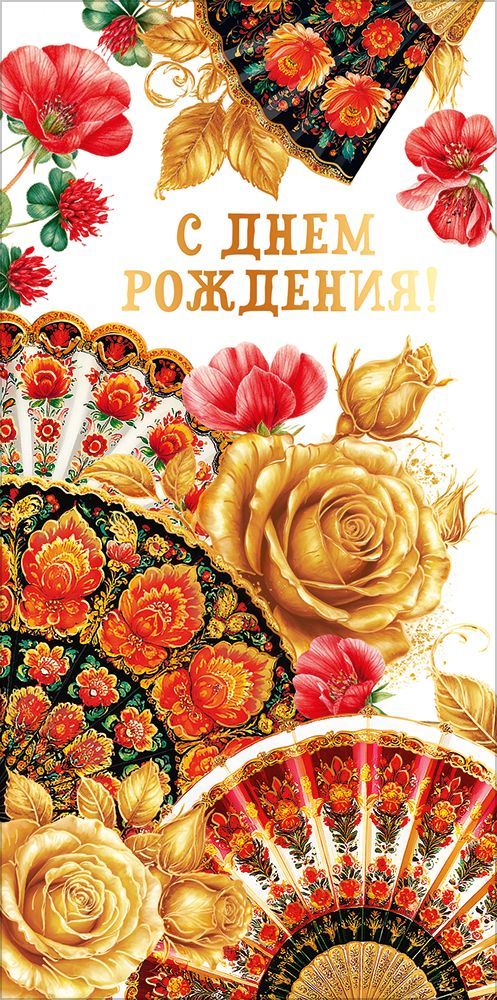 Конверт для денег «С днем рождения!» (красные веера)