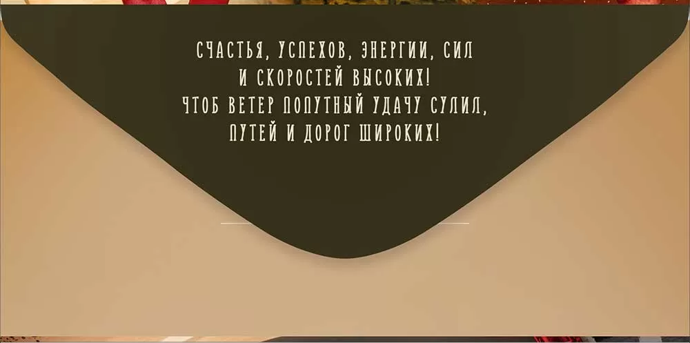 Стильный конверт для денег с надписью «Поздравляю!» идеально подходит в качестве подарка или дополнения к подарку. Конверт украшен яркой иллюстрацией, четкое полноцветное изображение покрыто глянцевым ВД-лаком. На конверте изображены коричневый автомобиль, несущийся по трассе, коробка-подарок, перевызанный ярко-бордовой атласной лентой, наручные часы, конверты для писем и печать. На внутреннем клапане написано небольшое пожелание. Размеры – 168х84 мм. На нашем сайте можно заказать конверты для денег оптом. В одной упаковке 10 шт.